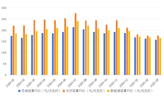 圖2 蒙西電力市場新能源結(jié)算價(jià)格情況(2024年1月—2025年3月)