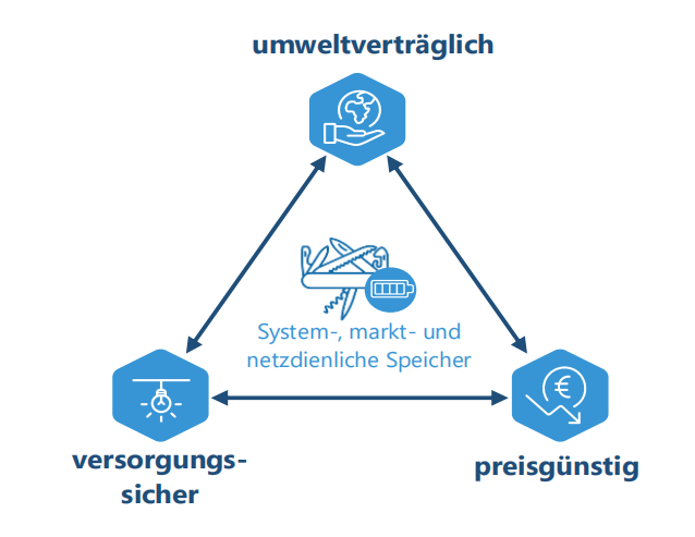 圖 2:系統(tǒng)支持型、市場(chǎng)支持型和電網(wǎng)支持型儲(chǔ)能系統(tǒng)為能源政策目標(biāo)三角做出貢獻(xiàn)。