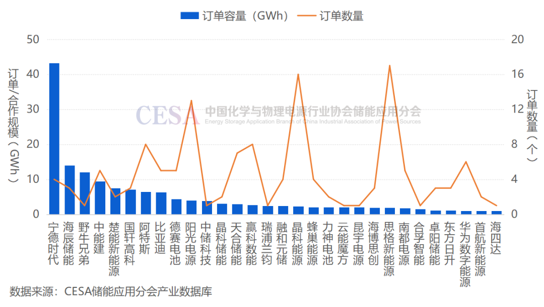 圖 2025年1-6月中國企業(yè)新增儲能出海訂單/合作規(guī)模及數(shù)量