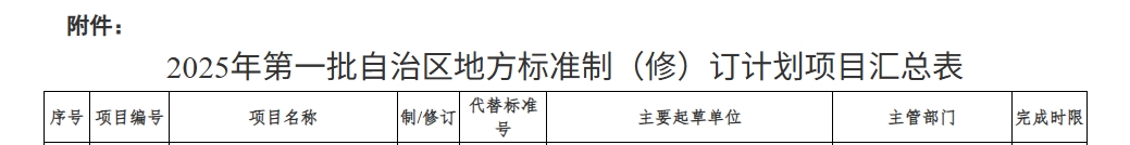 附件:2025年第一批自治區(qū)地方標準制(修)訂計劃項目匯總表