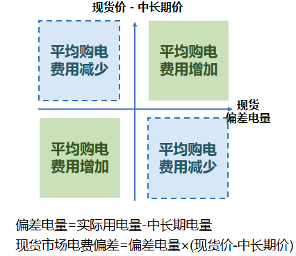 指現(xiàn)貨市場價格高于用戶簽訂的中長期合約價格,且用戶實際用電量超過了中長期合約量(多用)這種情況,典型場景是用電高峰、供應緊張導致現(xiàn)貨價格飆升時期。