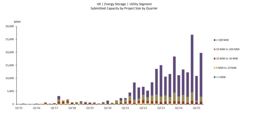 圖1英國2025年上半年提交電池儲(chǔ)能系統(tǒng)超過30GWh