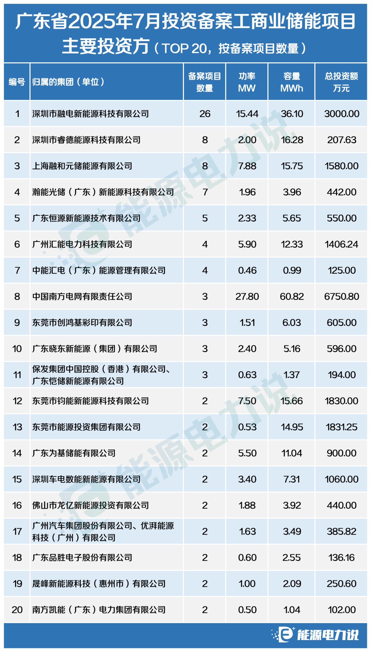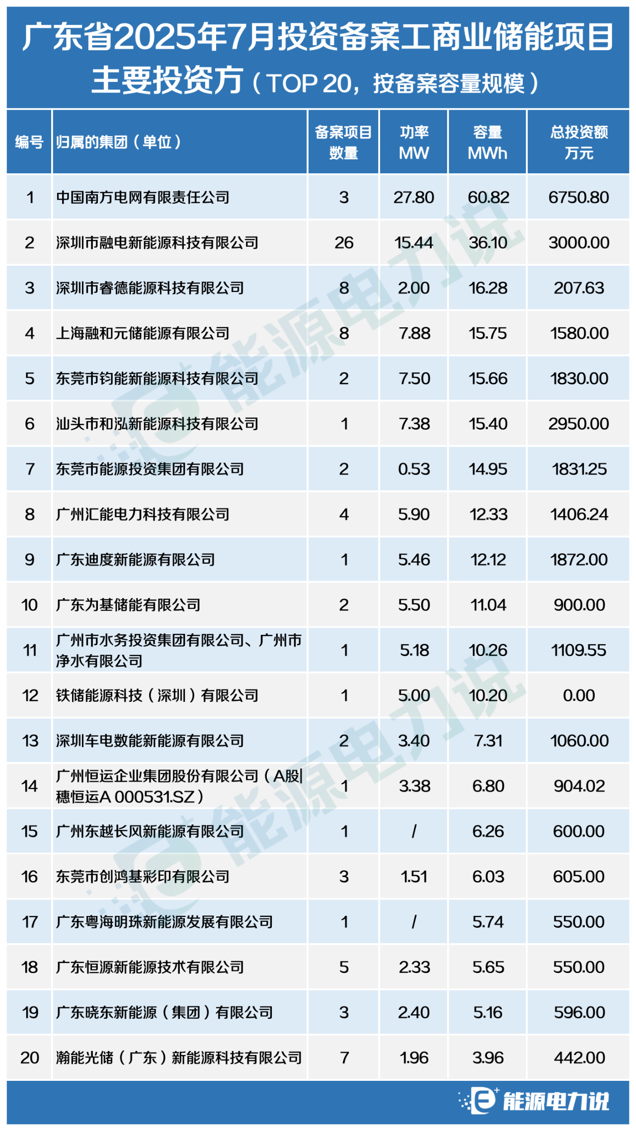 附:廣東2025年7月投資備案儲能項目清單