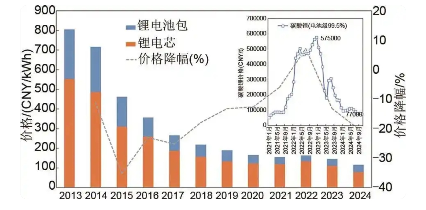 2013—2024年全球鋰離子電池平均價(jià)格
