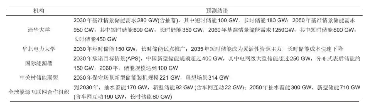 表2國(guó)內(nèi)外機(jī)構(gòu)儲(chǔ)能預(yù)測(cè)對(duì)比