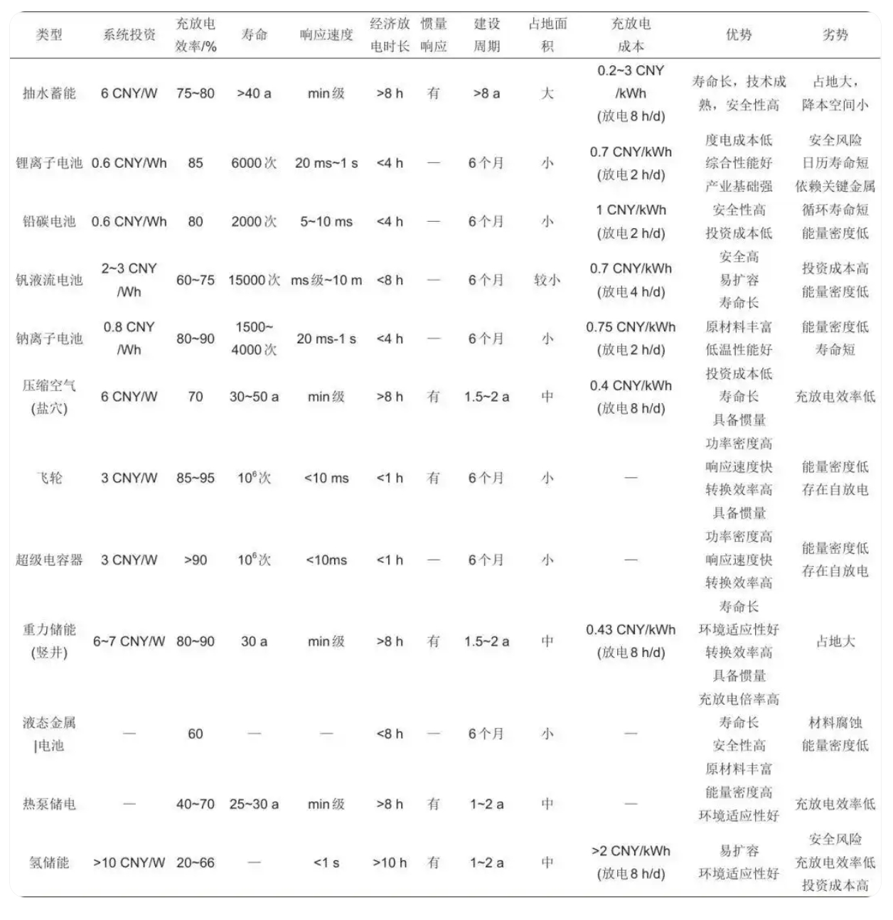 四類新型儲(chǔ)能技術(shù)發(fā)展要素對(duì)比