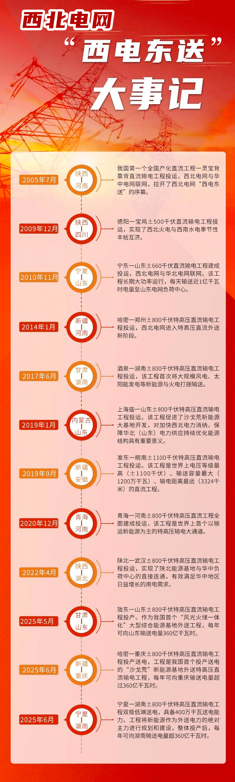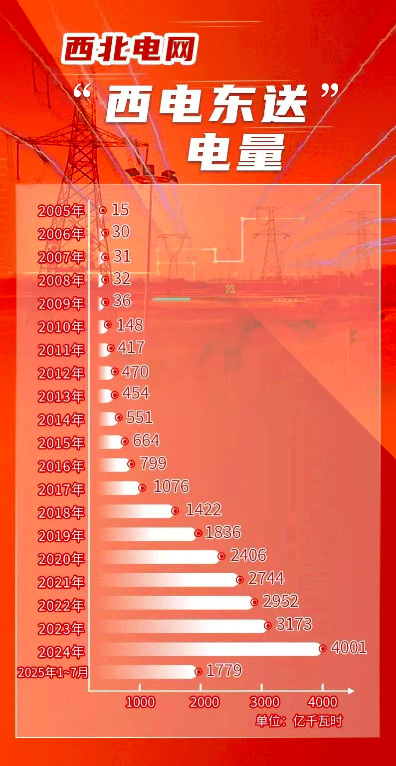 截至2025年7月,西北電網(wǎng)“西電東送”累計(jì)外送電量已突破2.5萬億千瓦時(shí)。從2005年7月到2025年7月,西北電網(wǎng)“西電東送”已走過了整整20年。