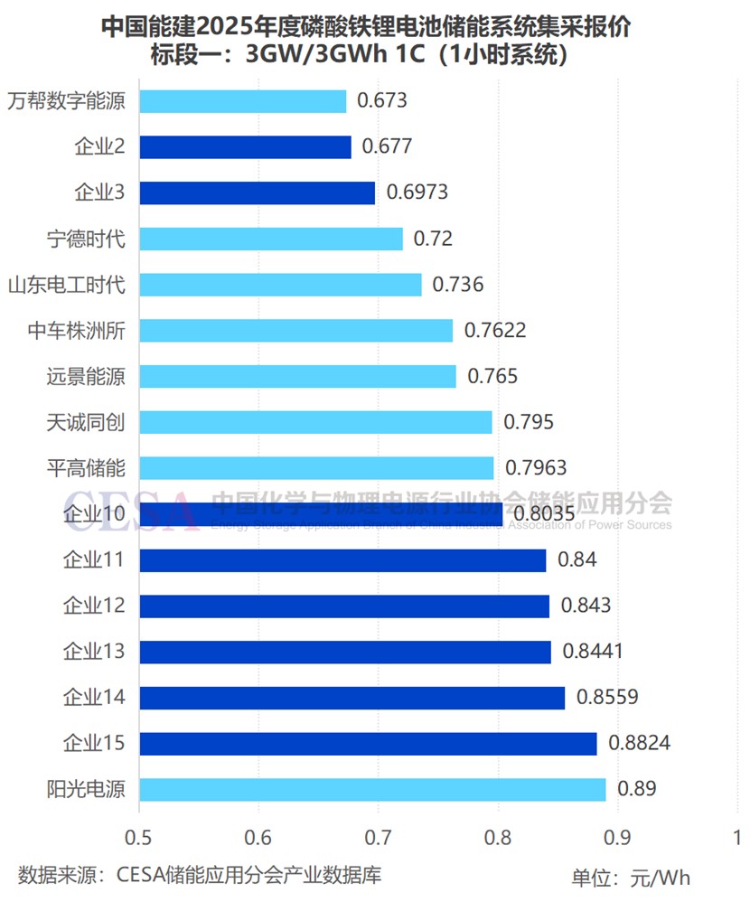1h儲(chǔ)能系統(tǒng)最低報(bào)價(jià)0.673元/Wh,來(lái)自于萬(wàn)幫數(shù)字能源。
