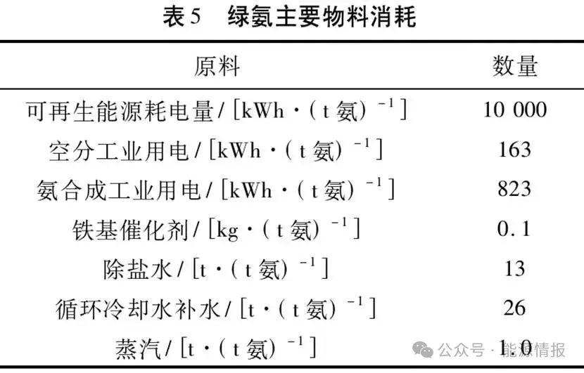 綠氨合成全過程的總消耗見表5。
