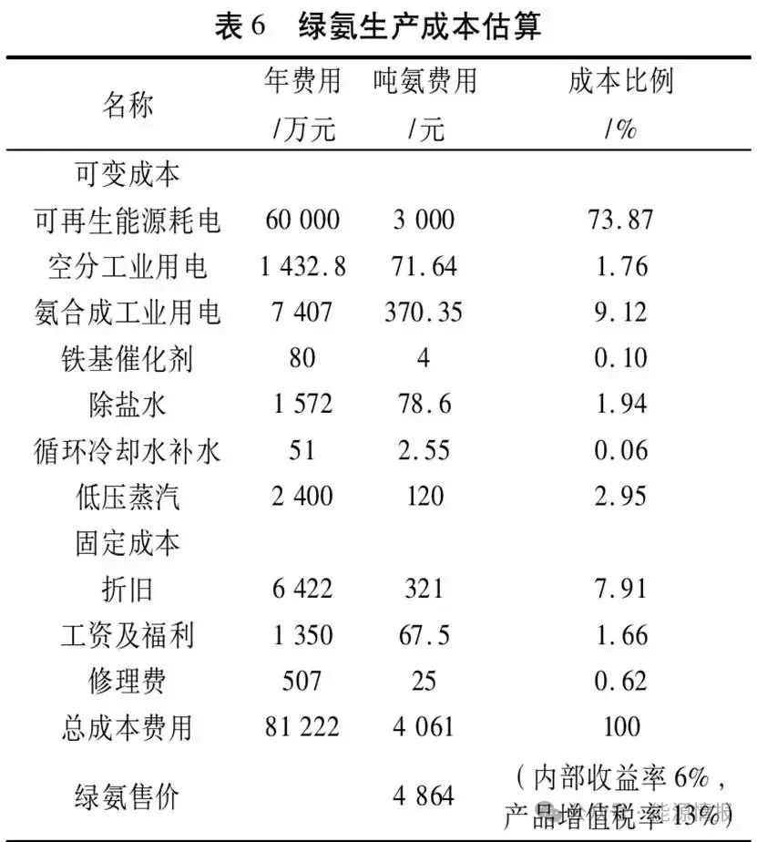 3 綠氨生產(chǎn)的經(jīng)濟性分析