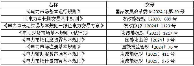 表:全國統(tǒng)一電力市場“1+6”基礎(chǔ)規(guī)則體系