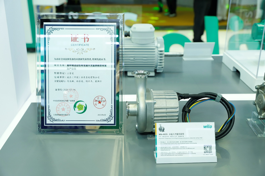 2025年6月,在上海國際泵閥展,威樂正式發(fā)布全新Wilo-BCES永磁大流量屏蔽泵產(chǎn)品,并一舉獲得了中國泵閥行業(yè)最具影響力的獎項 ——“全國流體裝備技術創(chuàng)新獎”!