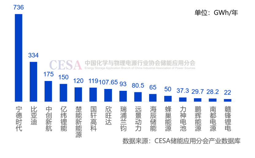 圖 截至2025年6月底鋰離子電池部分企業(yè)已投產(chǎn)年產(chǎn)能