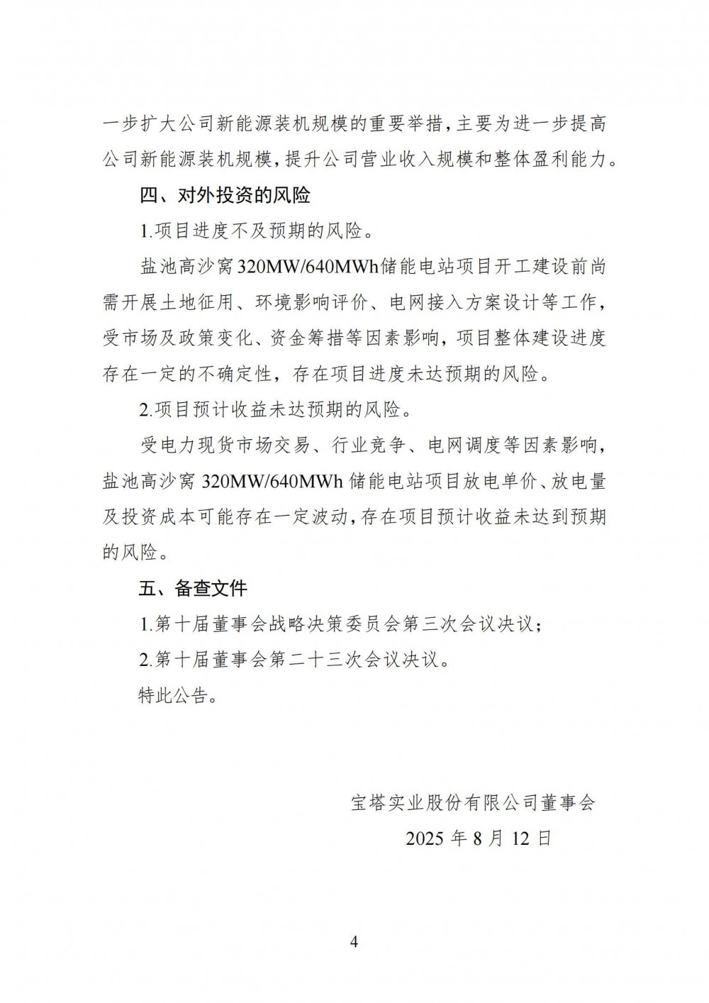 寶塔實(shí)業(yè)表示,鹽池高沙窩320MW/640MWh儲(chǔ)能電站項(xiàng)目建設(shè)系公司根據(jù)《自治區(qū)發(fā)展改革委關(guān)于推進(jìn)特色優(yōu)勢(shì)產(chǎn)業(yè)綠電園區(qū)儲(chǔ)能設(shè)施建設(shè)的通知》的要求,構(gòu)建“清潔低碳、安全高效”的現(xiàn)代能源產(chǎn)業(yè)體系,積極響應(yīng)自治區(qū)大力開(kāi)發(fā)可再生能源政策、進(jìn)一步擴(kuò)大公司新能源裝機(jī)規(guī)模的重要舉措,主要為進(jìn)一步提高公司新能源裝機(jī)規(guī)模,提升公司營(yíng)業(yè)收入規(guī)模和整體盈利能力。