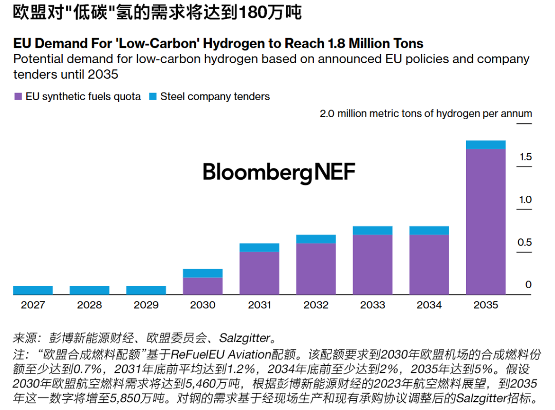 彭博新能源財(cái)經(jīng)對(duì)歐盟到2035年的低碳?xì)湫枨蟮念A(yù)估