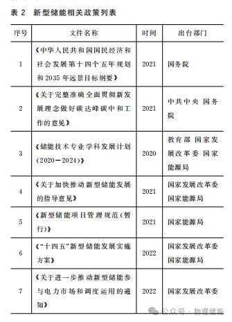為了努力構(gòu)建清潔低碳、安全高效能源體系,最終實現(xiàn)安全可靠的碳達峰、碳中和,國家大力支持包括物理儲能在內(nèi)的各類新型儲能技術(shù)的發(fā)展,中共中央、國務(wù)院以及各部委出臺了一列支持政策及文件,如表2所示。