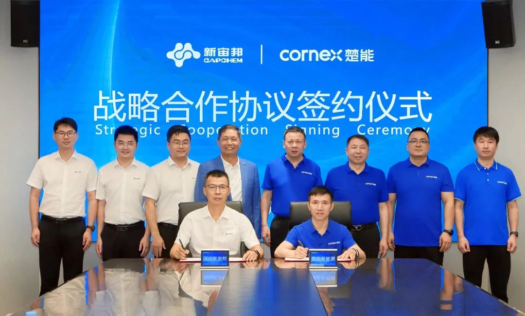 中國(guó)儲(chǔ)能網(wǎng)訊:8月18日,楚能新能源與新宙邦在楚能全球總部簽署戰(zhàn)略合作協(xié)議。楚能新能源副總裁朱小平、新宙邦常務(wù)副總經(jīng)理趙寶順代表雙方簽約。楚能新能源董事長(zhǎng)代德明、總裁黃鋒、執(zhí)行副總裁卜相楠、供應(yīng)鏈采購(gòu)中心總經(jīng)理張歡,新宙邦董事長(zhǎng)覃九三、研究院副院長(zhǎng)劉中波、產(chǎn)品開(kāi)發(fā)經(jīng)理李紅梅、華中業(yè)務(wù)部總監(jiān)王凱遠(yuǎn)等雙方高層領(lǐng)導(dǎo)出席活動(dòng)并見(jiàn)證簽約。