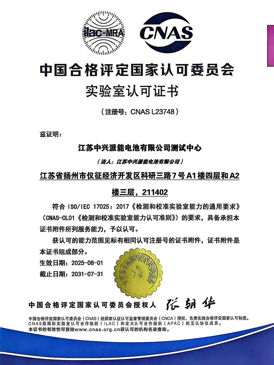 在本次評(píng)審中,CNAS專家組依據(jù)ISO/IEC 17025:2017《檢測(cè)和校準(zhǔn)實(shí)驗(yàn)室能力的通用要求》,對(duì)揚(yáng)州基地實(shí)驗(yàn)室的環(huán)境設(shè)施、儀器設(shè)備、人員資質(zhì)、質(zhì)量管理體系及技術(shù)能力進(jìn)行了全面審核。實(shí)驗(yàn)室在電池性能檢測(cè)、環(huán)境適應(yīng)性測(cè)試以及多項(xiàng)理化分析項(xiàng)目上展現(xiàn)出的專業(yè)水準(zhǔn)和技術(shù)實(shí)力,獲得了評(píng)審組的一致認(rèn)可。