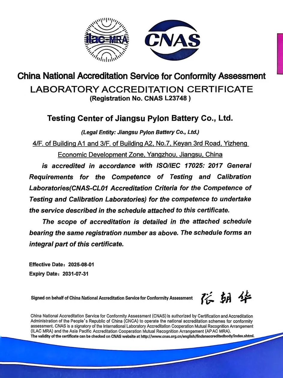 中國(guó)儲(chǔ)能網(wǎng)訊:近日,派能科技揚(yáng)州基地測(cè)試中心獲得CNAS認(rèn)可資質(zhì),標(biāo)志著其在電池檢測(cè)領(lǐng)域的技術(shù)能力、實(shí)驗(yàn)室質(zhì)量管理體系獲國(guó)家權(quán)威認(rèn)可,具備國(guó)際公信力。此前,派能科技上海全球總部實(shí)驗(yàn)室已獲得CNAS認(rèn)可資質(zhì)。兩地聯(lián)動(dòng),共同構(gòu)筑起派能科技全方位的檢測(cè)體系。