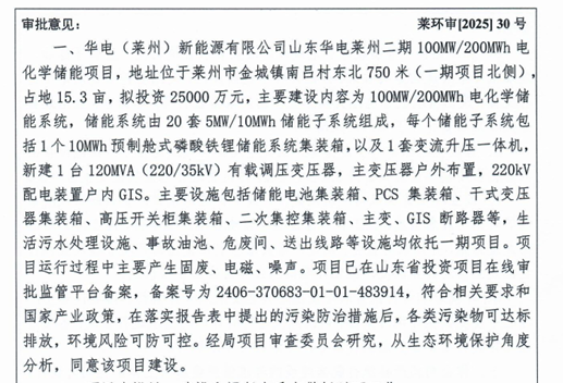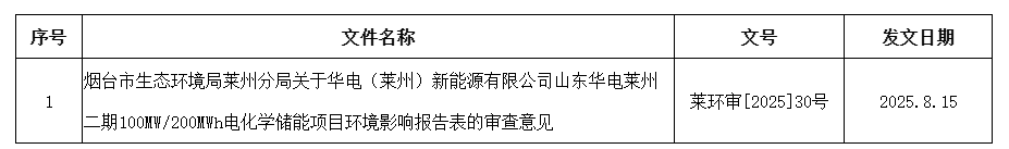 中國儲能網(wǎng)訊:8月18日,山東煙臺市生態(tài)環(huán)境局萊州分局公告,關于華電(萊州)新能源有限公司山東華電萊州二期100MW/200MWh電化學儲能項目環(huán)境影響報告表的審查意見。