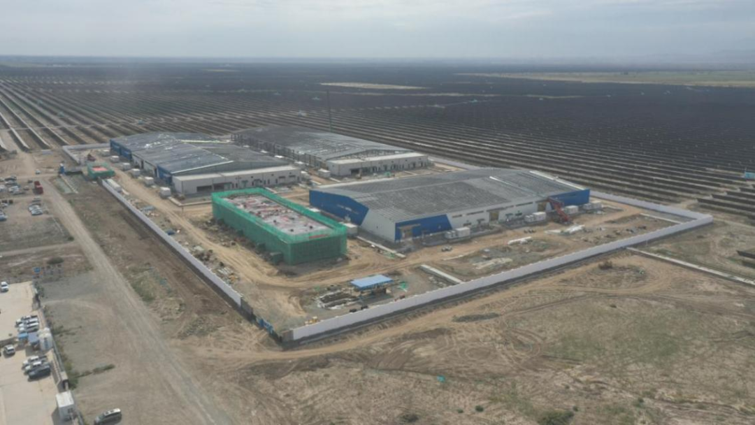 建設(shè)中的三峽集團(tuán)新疆吉木薩爾100萬千瓦光伏+20萬千瓦/100萬千瓦時(shí)全釩液流儲(chǔ)能一體化項(xiàng)目?jī)?chǔ)能電站。