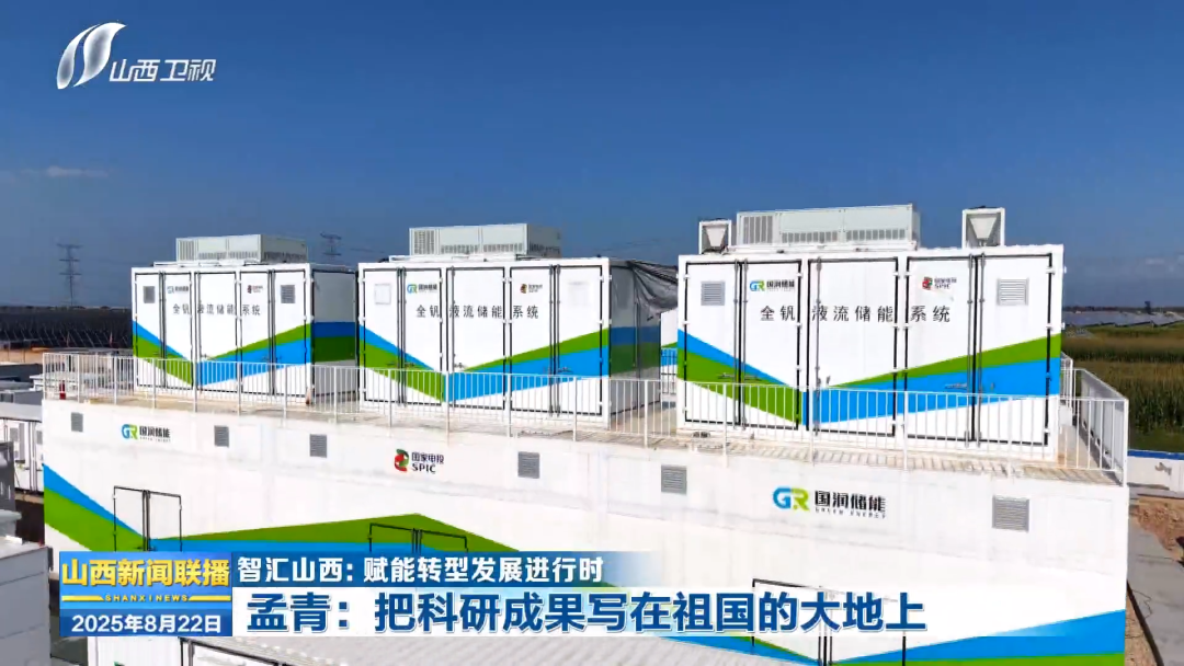 主持人:近年來,新能源裝機容量、發(fā)電量持續(xù)增長,但風光等新能源發(fā)電波動性大,給電力系統(tǒng)建設提出更高要求。4年前,清華大學機電系再戰(zhàn)博士后孟青選擇朔州作為創(chuàng)業(yè)起點,帶領團隊開啟了全釩液流電池研發(fā)生產(chǎn),打造了我省首個全釩液流電池與磷酸鐵鋰電池混合獨立共享儲能電站,為區(qū)域能源安全注入一份儲能智慧。
