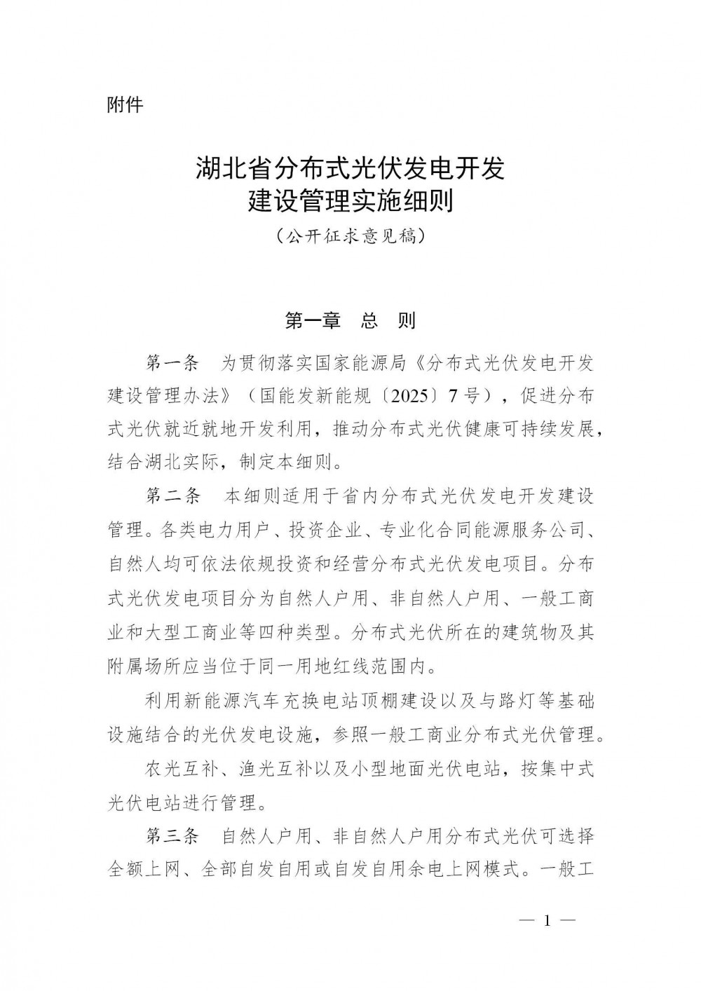 附件:《湖北省分布式光伏發(fā)電開發(fā)建設(shè)管理實(shí)施細(xì)則(公開征求意見稿)》.docx