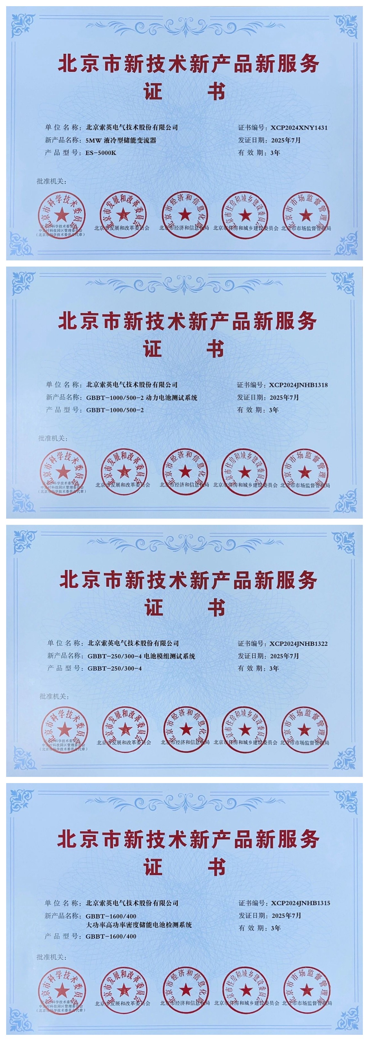中國儲能網(wǎng)訊:近日,索英電氣的5MW液冷型儲能變流器、動力電池測試系統(tǒng)、電池模組測試系統(tǒng)及大功率高功率密度儲能電池檢測系統(tǒng),憑借其卓越的技術創(chuàng)新性與顯著的市場競爭力,榮獲由北京市科學技術委員會、中關村科技園區(qū)管理委員會、北京市發(fā)展和改革委員會、北京市經濟和信息化局、北京市住房和城鄉(xiāng)建設委員會、北京市市場監(jiān)督管理局等六部門聯(lián)合頒發(fā)的《北京市新技術新產品新服務》證書。