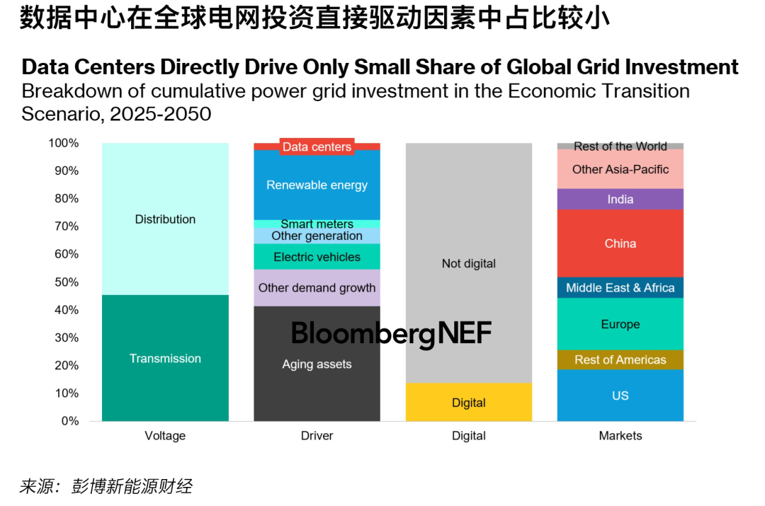 數(shù)據(jù)中心直接驅動的全球電網(wǎng)累計投資份額