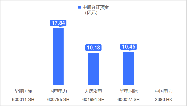 為持續(xù)加強(qiáng)投資者回報(bào)、構(gòu)建長(zhǎng)期共贏機(jī)制,在此次半年報(bào)披露的同時(shí),國(guó)電電力、大唐發(fā)電、華電國(guó)際均發(fā)布中期分紅預(yù)案,其中國(guó)電電力分紅總額最高,預(yù)計(jì)達(dá)17.84億元。