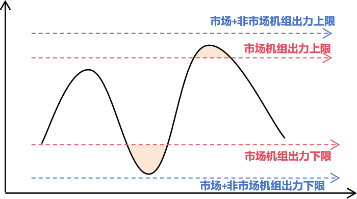 當(dāng)省區(qū)內(nèi)出現(xiàn)正不平衡量(即存在供應(yīng)缺口)時,參與優(yōu)化的非市場機組調(diào)增出力;當(dāng)出現(xiàn)負不平衡量時(即存在調(diào)峰缺口),參與優(yōu)化的非市場機組調(diào)減出力。