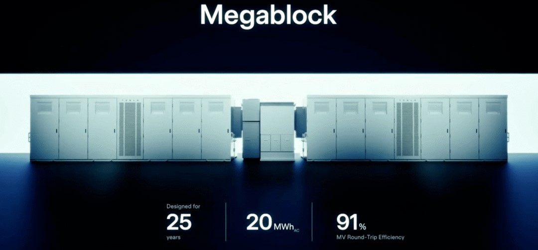 其最新推出的Megapack 3單體容量較上一代的3.9 MWh提升至5MWh,該產(chǎn)品內(nèi)部集成了特斯拉自主研發(fā)制造的變壓器,而四套Megapack3則組成了一套20MWh的Megablock,具備25年運(yùn)行壽命(電池>1萬(wàn)次循環(huán))。