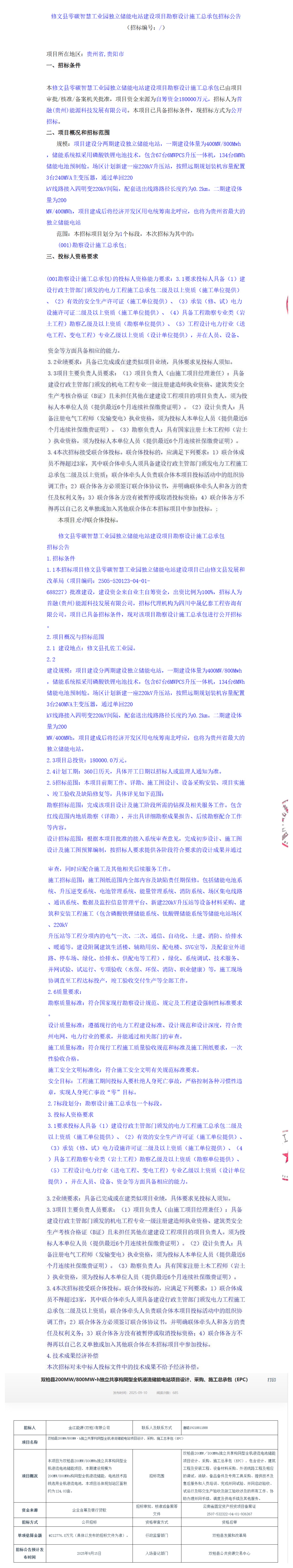 項目總投資180000萬元,折合單價1.5元/Wh,計劃工期360日歷天,允許聯(lián)合體投標。