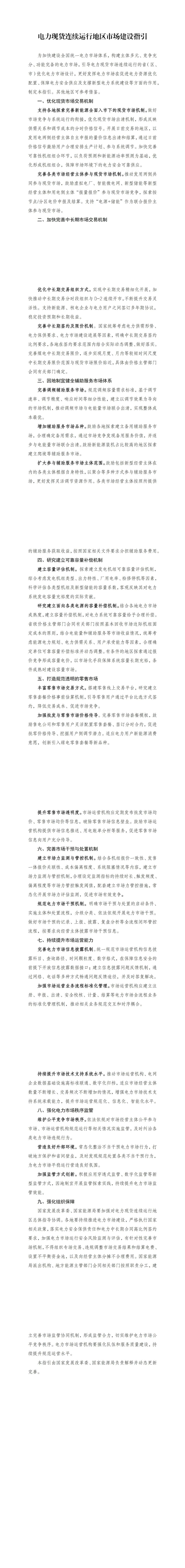 為持續(xù)完善電力市場機制設計,我們組織制定了《電力現(xiàn)貨連續(xù)運行地區(qū)市場建設指引》?,F(xiàn)印發(fā)給你們,請結合實際做好落實。