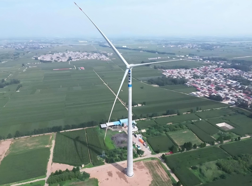 據(jù)悉,該項目位于河北省邯鄲市磁縣境內(nèi),風(fēng)場廠區(qū)為丘陵地形,共安裝35臺5兆瓦以上的風(fēng)力發(fā)電機組,總裝機容量達200兆瓦,本次并網(wǎng)機組為F4機組,為混塔結(jié)構(gòu),與傳統(tǒng)鋼塔筒相比,可以有效提升設(shè)計施工靈活性,減少建造周期,降低建設(shè)和運行維護成本。項目全容量投運后,預(yù)計年發(fā)電量約3.89億千瓦時,每年可節(jié)約標(biāo)煤11.86萬噸,減排二氧化碳31.42萬噸,能夠為當(dāng)?shù)鼐G色低碳發(fā)展和優(yōu)化區(qū)域能源結(jié)構(gòu)強基賦能,助力采煤沉陷區(qū)生態(tài)修復(fù)與能源轉(zhuǎn)型協(xié)同發(fā)力。