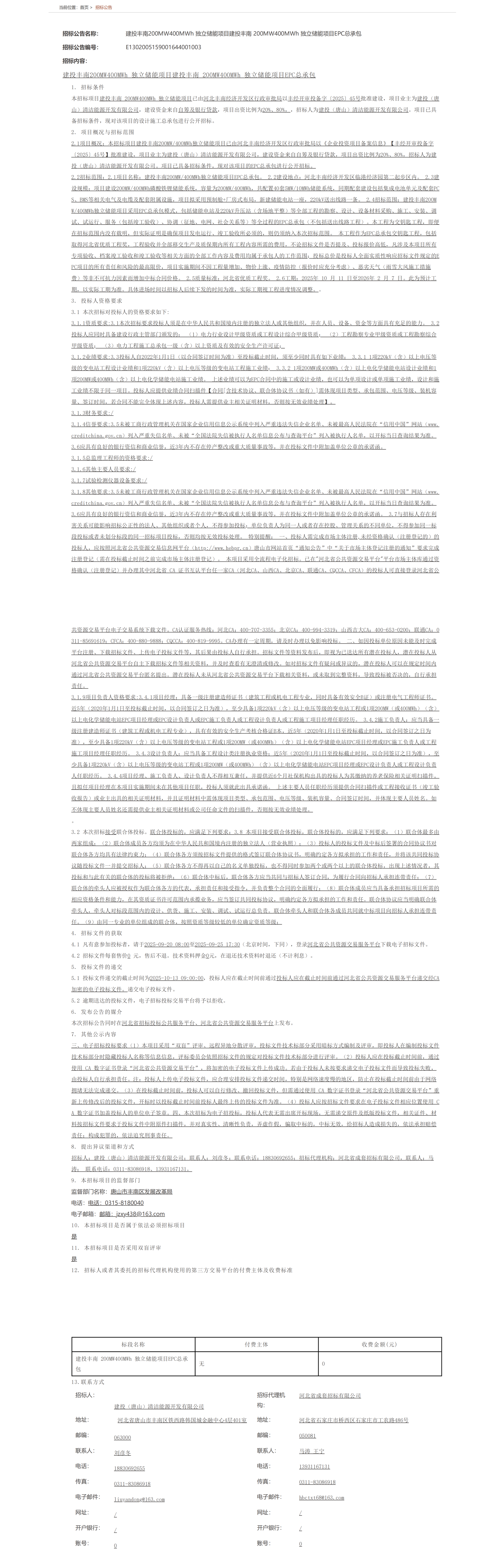 招標(biāo)人為建投(唐山)清潔能源開(kāi)發(fā)有限公司。