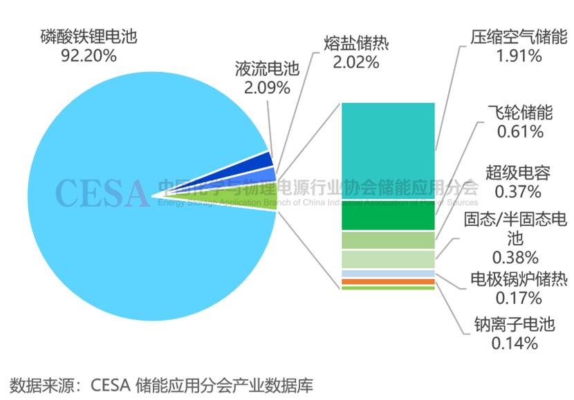 圖 2025年1-8月新型儲(chǔ)能各技術(shù)路線新增裝機(jī)功率占比