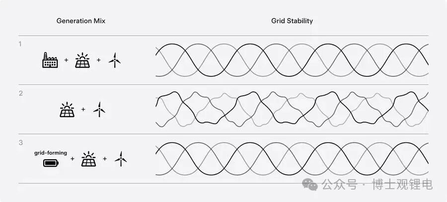 構(gòu)網(wǎng)型儲(chǔ)能系統(tǒng)(ESS)是黑啟動(dòng)操作的理想選擇,因其具備儲(chǔ)能能力且輔助負(fù)載需求極低。與跟網(wǎng)型逆變器不同,構(gòu)網(wǎng)型電池可獨(dú)立建立電壓波形,為局部區(qū)域供電,無(wú)需依賴附近的同步發(fā)電機(jī)。一旦運(yùn)行,這些逆變器可通過(guò)提供穩(wěn)定電壓和頻率,啟動(dòng)跟網(wǎng)型可再生能源(如太陽(yáng)能和風(fēng)電場(chǎng))。