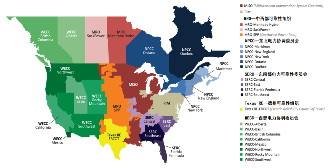 圖1:北美電力可靠性評(píng)估區(qū)域