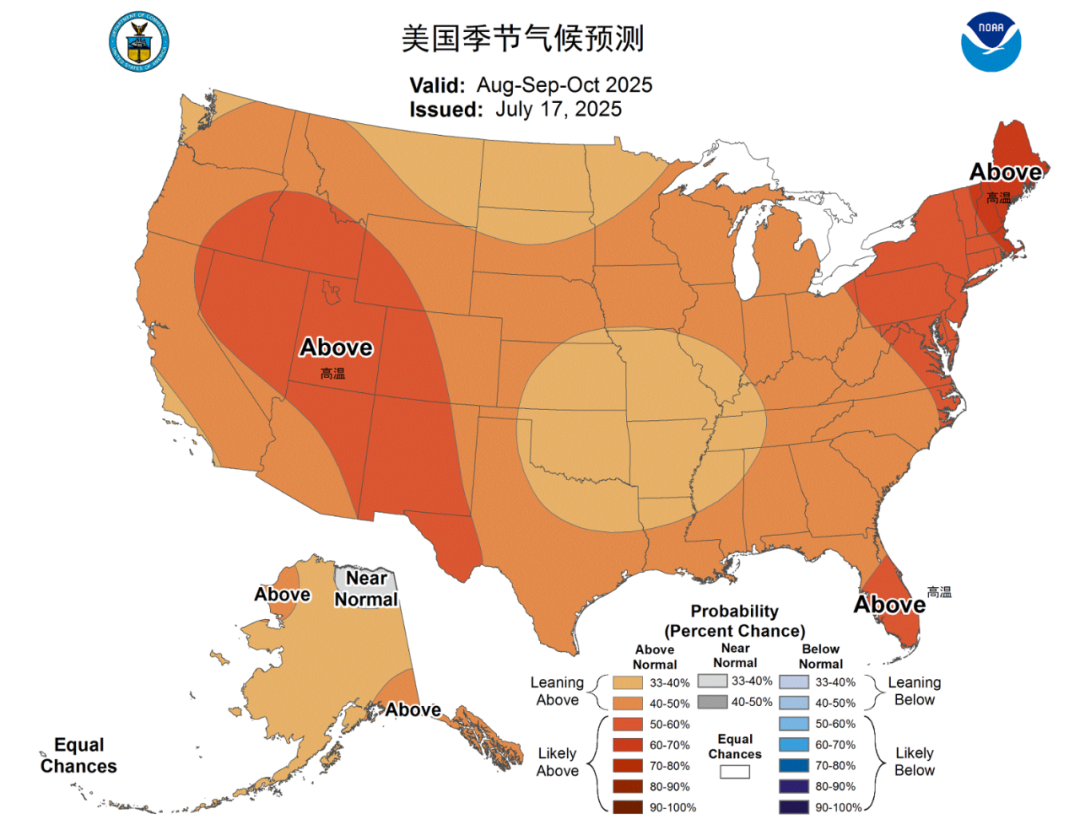 圖2:美國(guó)8—10月溫度預(yù)測(cè)情況