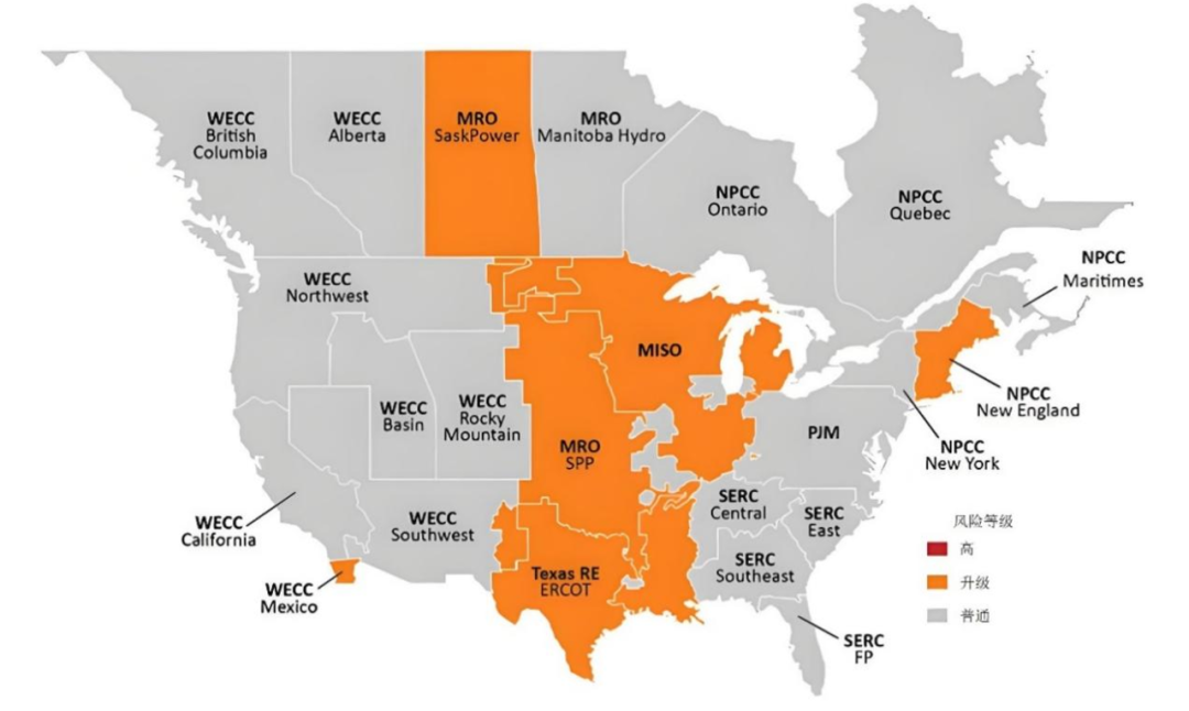 圖4:北美電力供應(yīng)可靠性風(fēng)險(xiǎn)區(qū)域