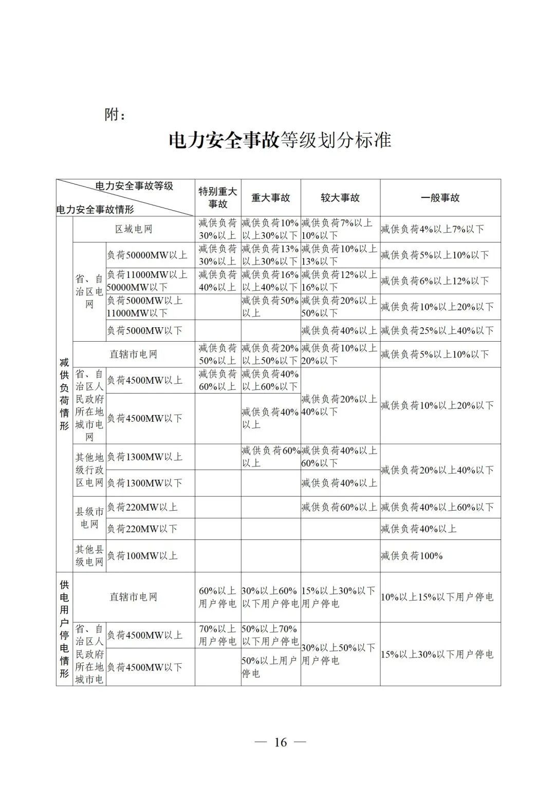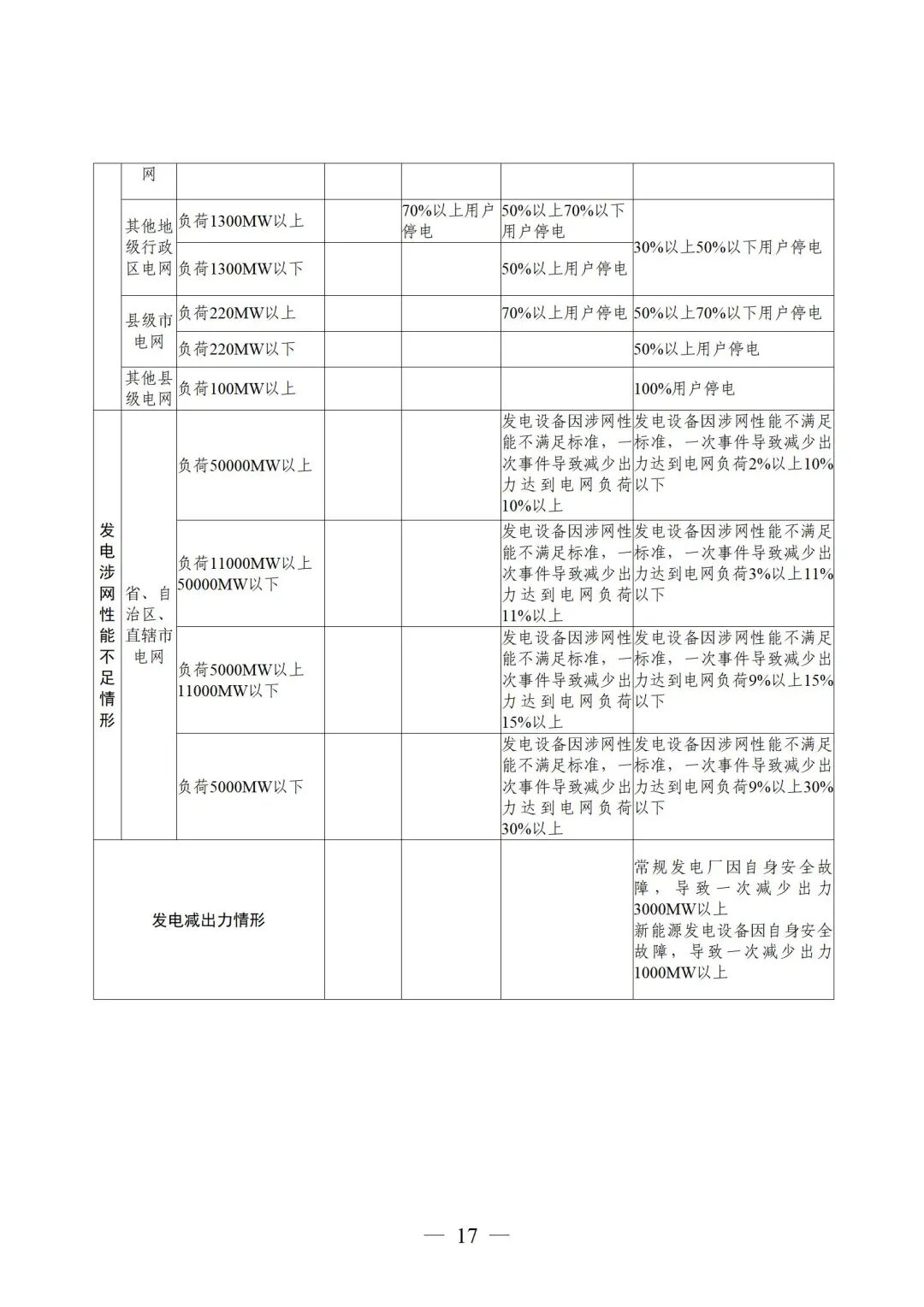 二是調(diào)整事故等級(jí)劃分標(biāo)準(zhǔn)。著眼多元并網(wǎng)主體接入、負(fù)荷水平持續(xù)增長(zhǎng)的趨勢(shì),遵循“公平公正、科學(xué)嚴(yán)謹(jǐn)、從嚴(yán)管控”的原則,優(yōu)化完善事故等級(jí)劃分標(biāo)準(zhǔn),重點(diǎn)通過(guò)調(diào)整各級(jí)行政區(qū)域負(fù)荷基數(shù)區(qū)間,確保事故判據(jù)與當(dāng)前電力系統(tǒng)發(fā)展現(xiàn)狀相適應(yīng)。