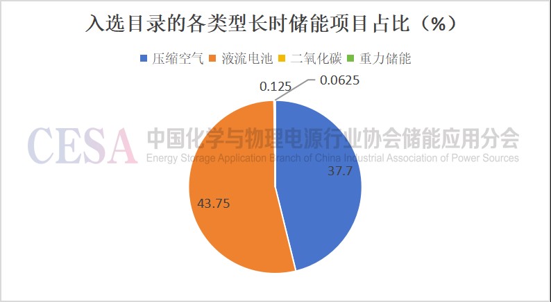 從技術類型看,入選的五批次長時儲能項目中,液流電池儲能占比最高達43.75%,壓縮空氣占比達37.7%,排第二。