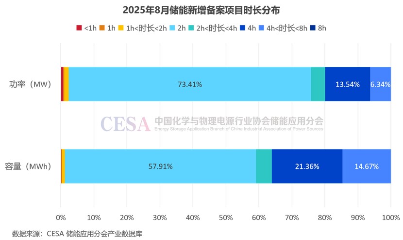 2025年8月,國內(nèi)新增備案儲能項目中,61.49GW/155.95GWh時長明確,平均時長2.54小時。