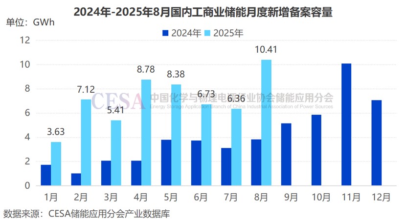 2025年1-8月工商業(yè)儲(chǔ)能新增備案項(xiàng)目規(guī)模達(dá)24.53GW/56.82GWh,容量同比增長(zhǎng)165.36%,已超過去年全年工商業(yè)儲(chǔ)能的備案規(guī)模。