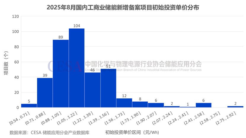 88.68%的工商業(yè)儲(chǔ)能項(xiàng)目初始投資單價(jià)在0.71-1.56元/Wh區(qū)間內(nèi),52%的工商業(yè)儲(chǔ)能項(xiàng)目初始投資單價(jià)在0.88-1.22元/Wh范圍內(nèi)。