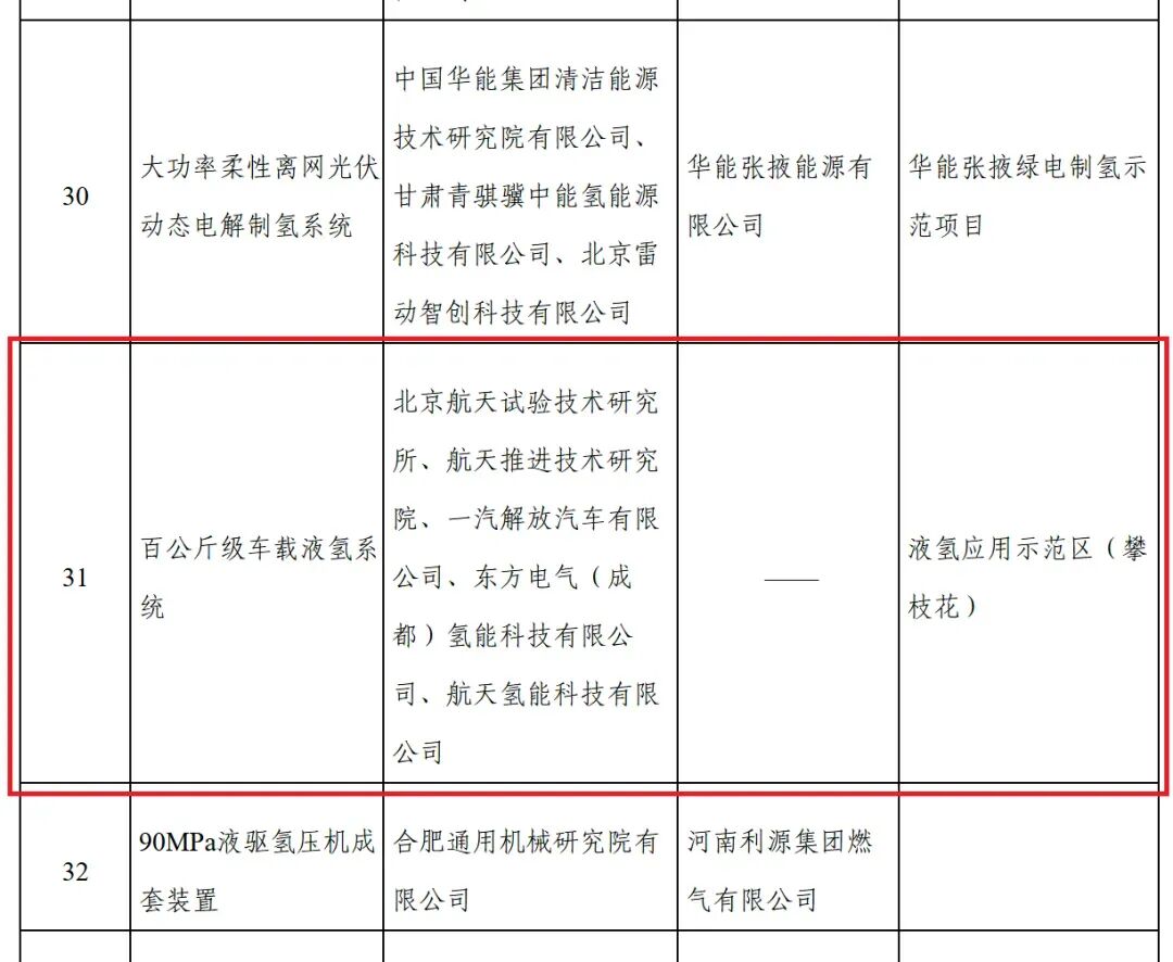 中國儲能網(wǎng)訊:近日,國家能源局公示第五批82項能源領(lǐng)域首臺(套)重大技術(shù)裝備名單,由我會會員單位北京航天試驗技術(shù)研究所牽頭,聯(lián)合航天推進技術(shù)研究院、一汽解放汽車有限公司、東方電氣(成都)氫能科技有限公司、航天氫能科技有限公司,依托液氫應(yīng)用示范區(qū)(攀枝花)項目申報的“百公斤級車載液氫系統(tǒng)”成功入選,是中國航天科技集團有限公司入選的唯一項目。