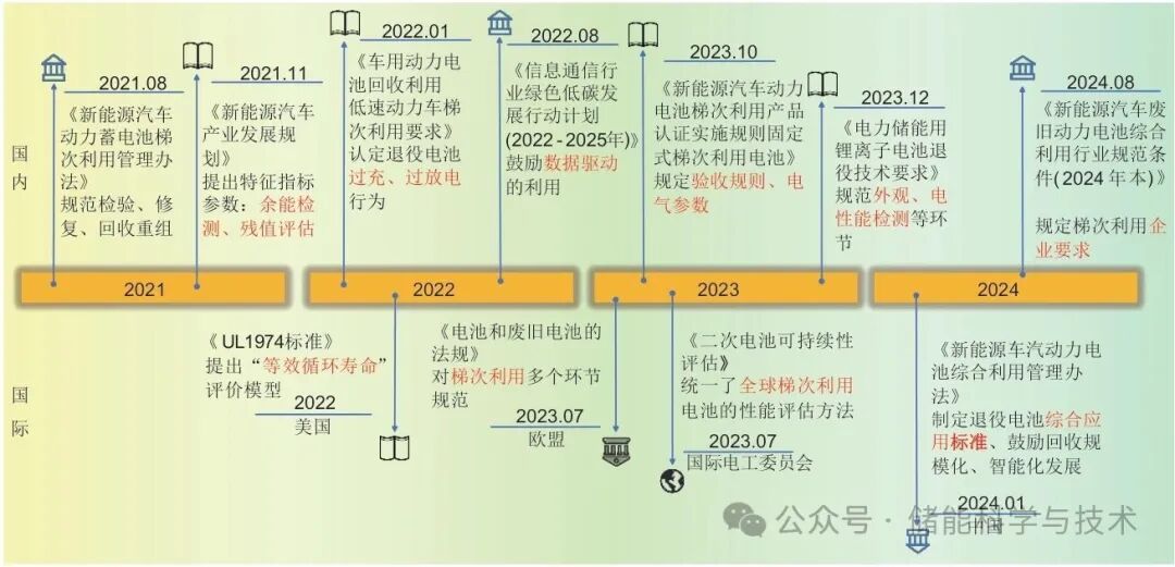 預(yù)計(jì)到2030年,我國(guó)RB數(shù)量將達(dá)到150萬(wàn)GWh,這一龐大的數(shù)量將對(duì)資源管理和處置提出前所未有的挑戰(zhàn)。在“十四五”期間,我國(guó)逐步規(guī)范了電池處理技術(shù),推動(dòng)了行業(yè)標(biāo)準(zhǔn)化發(fā)展。如圖1,對(duì)近幾年典型法規(guī)標(biāo)準(zhǔn)進(jìn)行梳理。