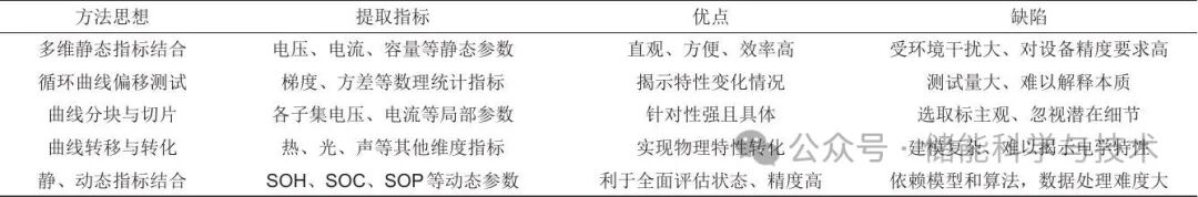 多維度特征指標(biāo)主要源自充放電曲線中的各典型點(diǎn)和特征線段。相較于第二部分中對(duì)特征指標(biāo)提取效率的討論,本部分主要聚焦于各方法在分辨率、誤差等方面的優(yōu)勢(shì)對(duì)比。多層次特征指標(biāo)的應(yīng)用則側(cè)重于特征指標(biāo)提取后的處理方式,通過(guò)多個(gè)環(huán)節(jié)和不同視角進(jìn)行綜合分析,以提高分析結(jié)果的精度。