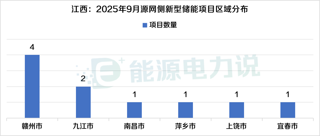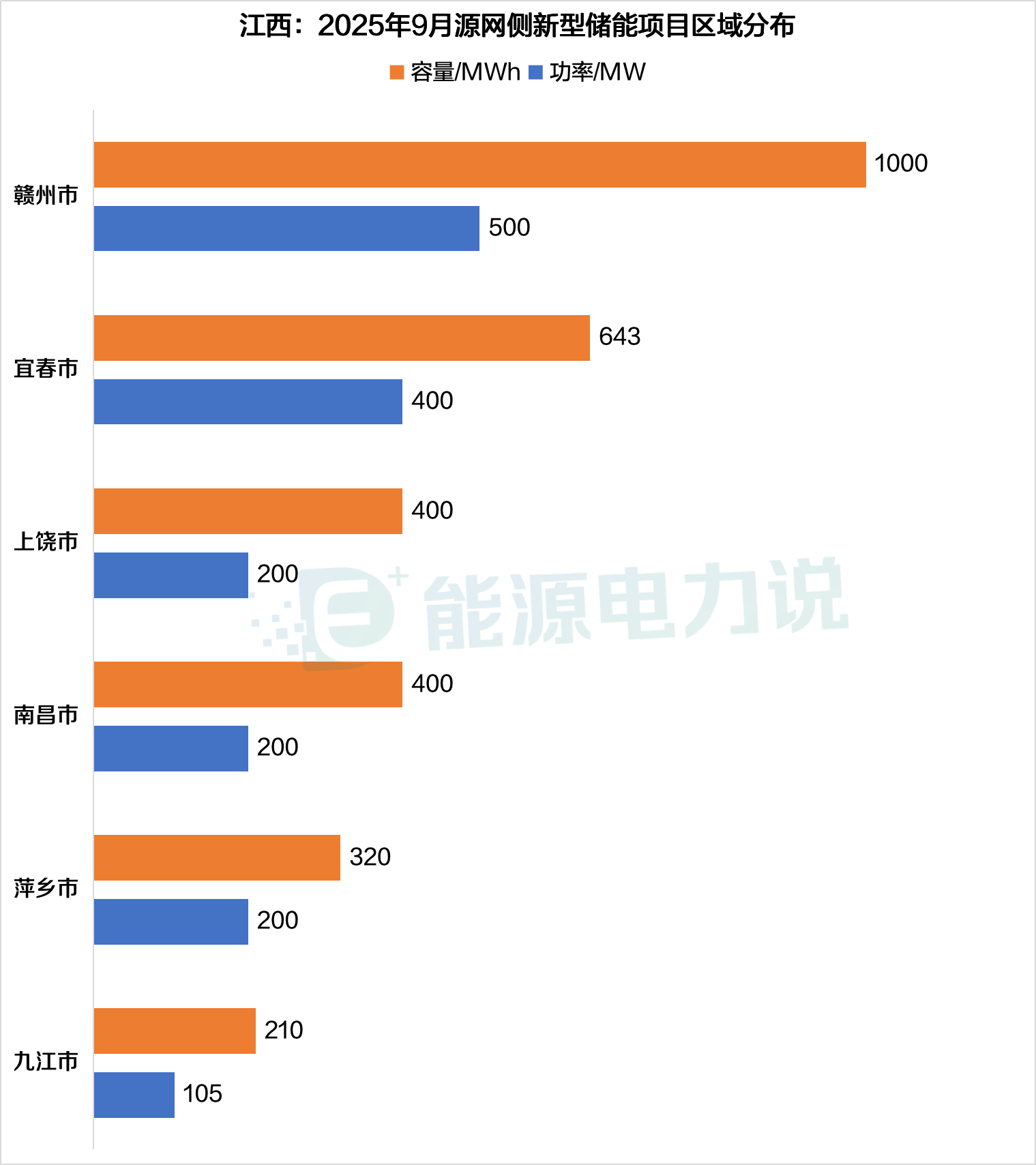 項目地分布方面,10個項目分布贛州、九江、南昌、萍鄉(xiāng)等6個地市。其中,贛州項目4個,總規(guī)模500MW/1000MWh。九江項目2個,總規(guī)模105MW/210MWh。